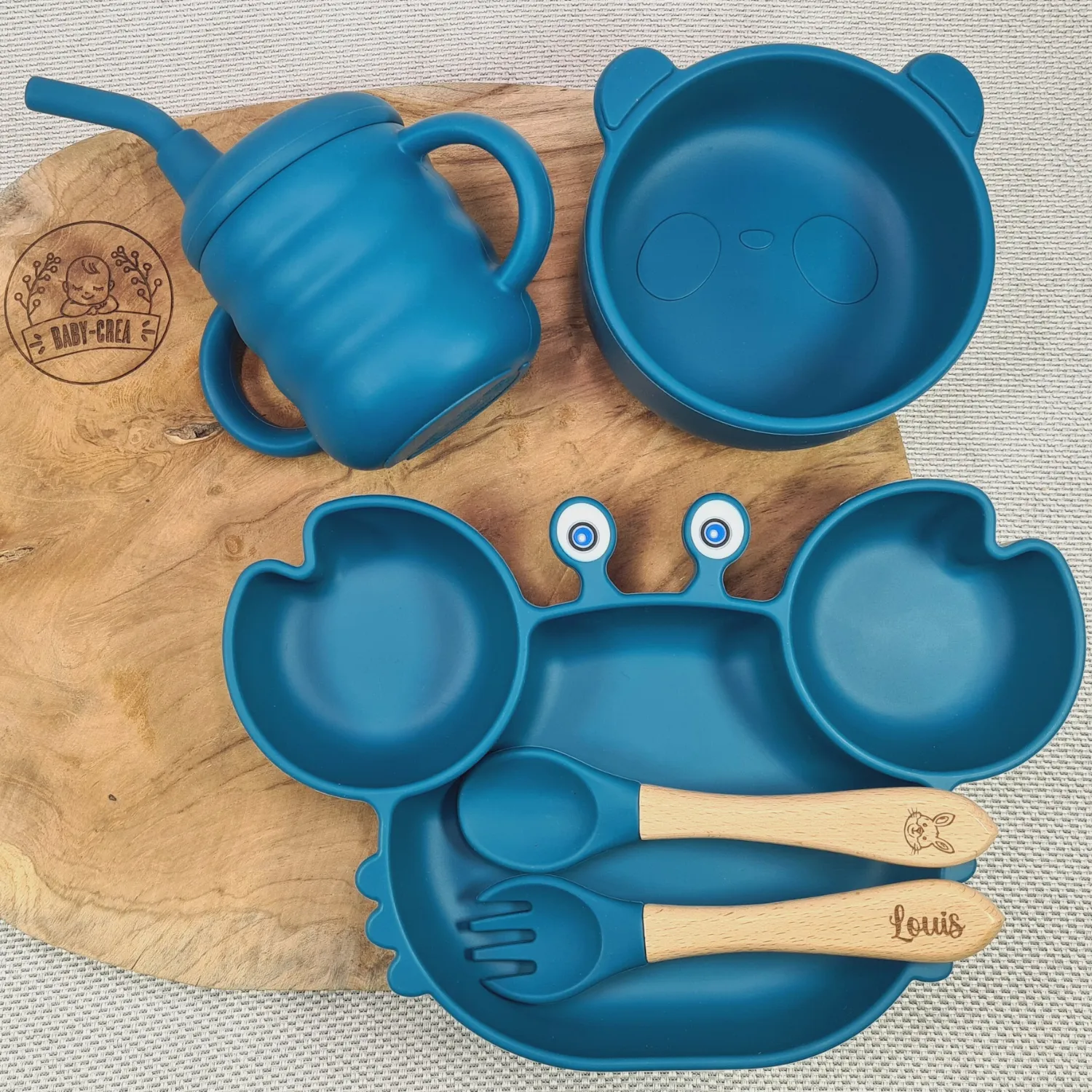 Coffret Repas Bébé Complet en Silicone Personnalisable | Crabe